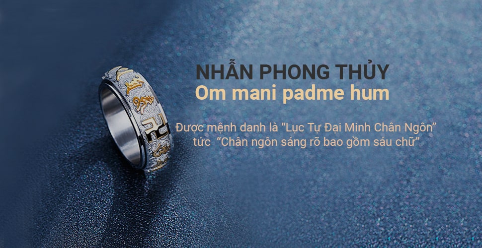Nhẫn phong thủy khắc thần chú Om mani padme hum